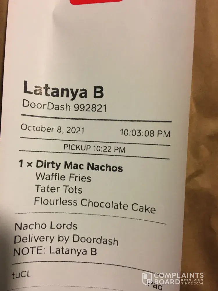 Desired outcome: Bring me my food or give me my money back.