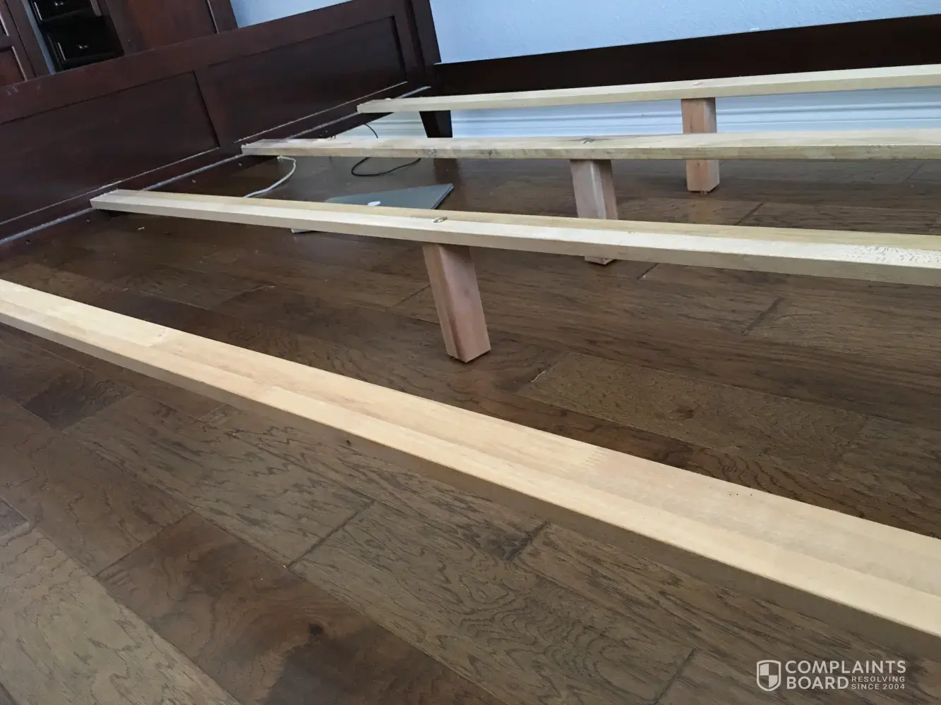 I purchased the Hudson collection in approximately 2011 order number [protected]. My bed side railing recently collapsed. Upon inquiry to Pottery Barn they told me that was normal wear and tear. When removing the mattresses too take the side rail to a furniture repair shop I noted improper installation of the bed. The slats used are too small and barely reach the left side which collapsed. It is clear that they put more than one screw in trying to adjust for the improper slats. One screw did not even make it into the side being. There is also a total of five total slats. One slat is missing the vertical support beam. All of these imperfections and installation led to the premature collapse of my bed. I don't believe the Hudson furniture should collapse after six years of normal wear and tear. I am a single mom I weigh approximately 180 pounds. That should not be excess wear and tear on the bed. The bed remains installed in its initial location. This is a failure of your delivery team to properly install a bed. Your customer service team including ACM told me that they cannot help me because it is out of the time frame needed to make a complaint. I don't believe any reasonable customer would stand by and observe your installation team placing the slats or remove the bed springs after they had installed them in order to see if they had done proper installation. There is no reasonable expectation that I would have noted the failure to properly install the bed prior to it collapsing. Therefore I feel Pottery Barn needs to address this problem. I am OK with the side rail being repaired as new rails would not match the current stain. But what I do need is a proper base/slats or this will just occur again.