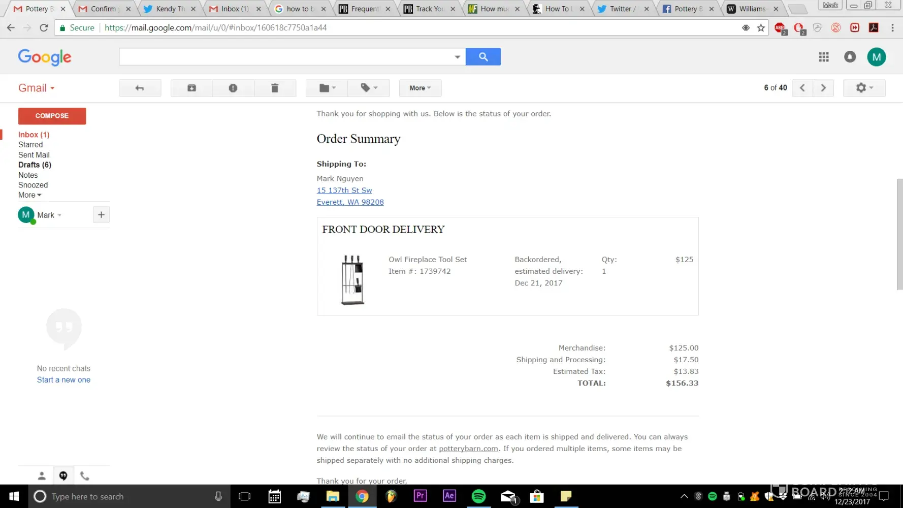 On 11/28 I ordered a whole new bedding onsomble from Potterybarn online,