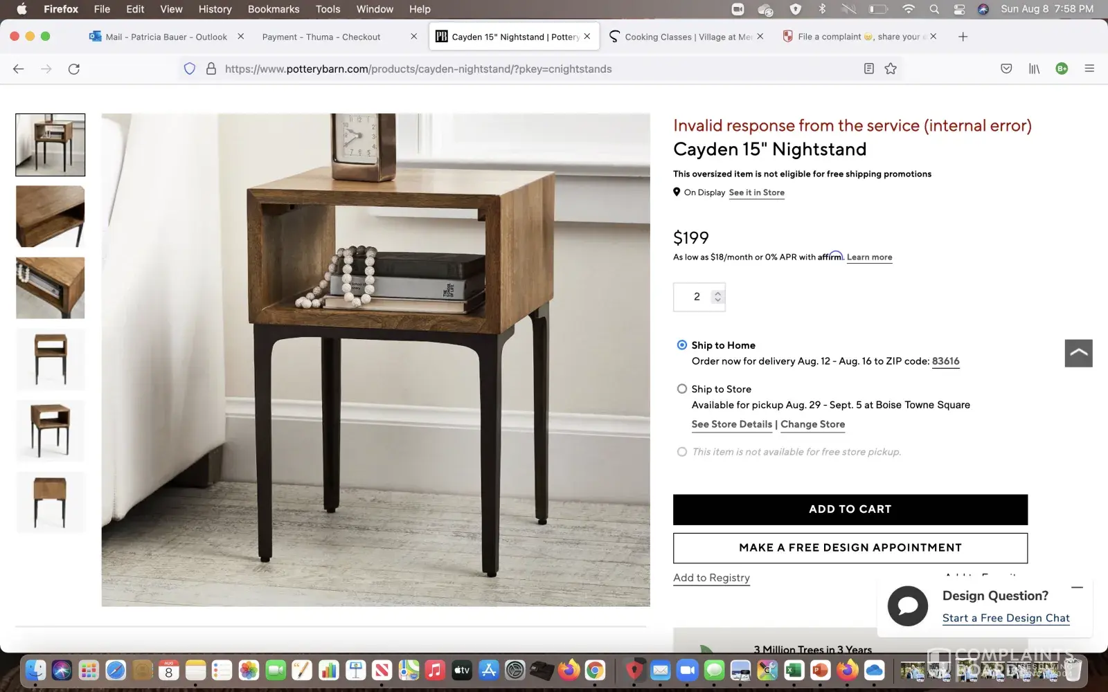 Desired outcome: Pottery Barn reimburse me for added cost to replace defective product.