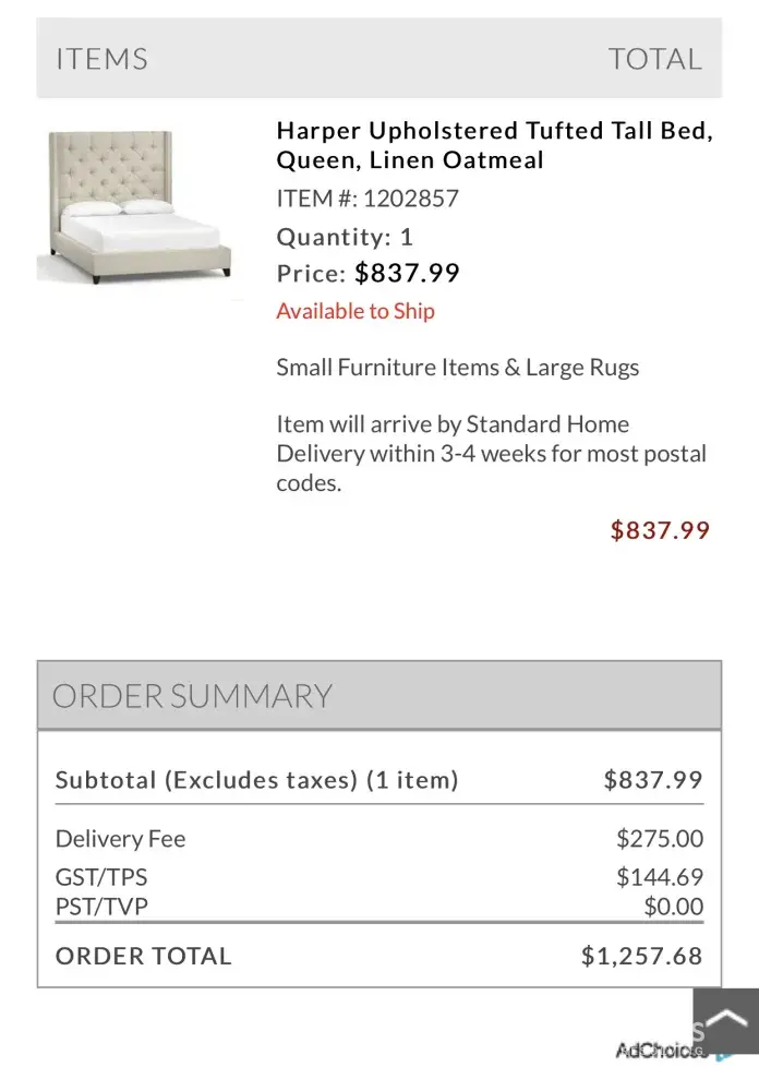 Last year we had a horrible experience with a bed delivery that took almost 5 months to get.