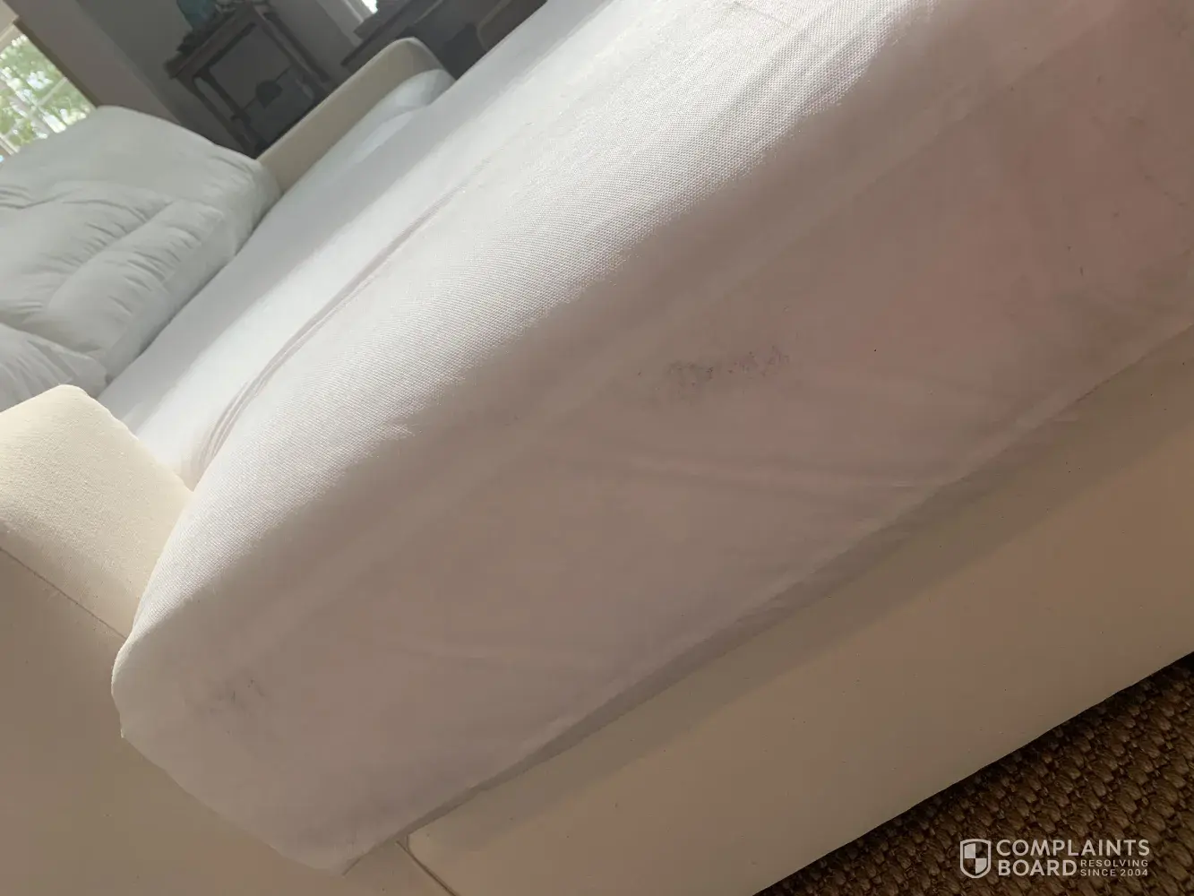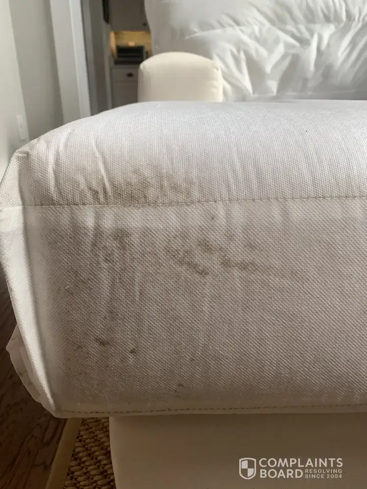 Ordered PB comfort sofa with double chaise lounge and it was delivered with no slipcover. Order #[protected]. I have reached out to customer care and have provided photos with no return call/follow up, nothing! Have waited 5 weeks for the delivery and now we have a bare sofa we can't sit on. Extremely disappointed after spending a lot of $$ and have no answers or time frame when we can expect the slipcover to arrive. Very poor customer service. The side of the chaise cushion also soiled and almost looks moldy. I would expect more from pottery barn.
