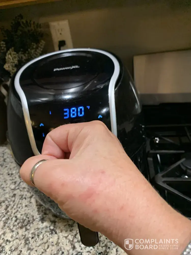 This air fryer is unsafe when you try to empty things like French fries out of it! The bottom plates doesn't stay on while dumping and it fell out and burnt my hand! I think you need a better design. I was already having arthritis issues with the hand in the same area that got burned! Also I don't like how it sits there to start and you don't even know if it's going to start! I liked my old one better but it wasn't big enough.