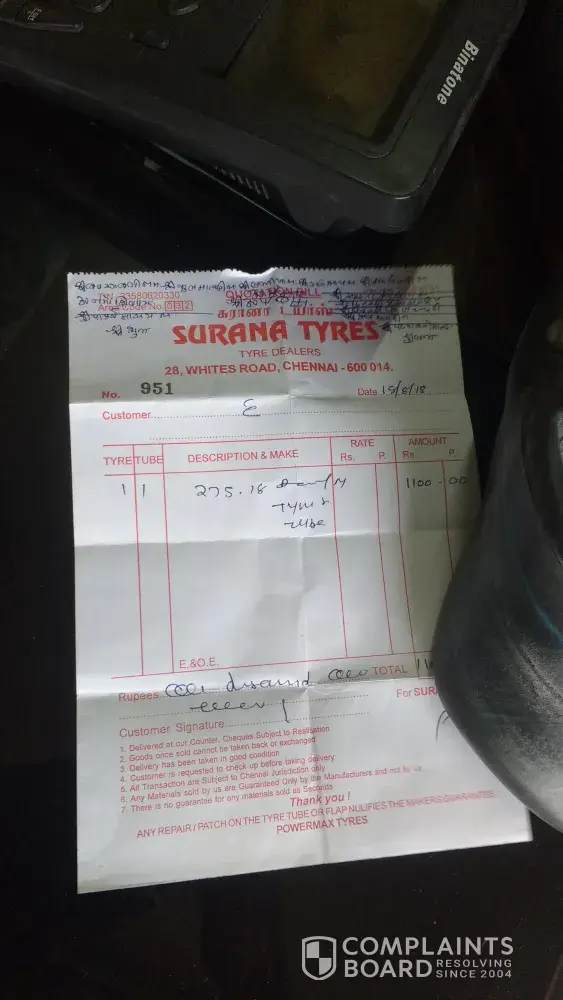 Sir, I have changed my bike's front wheel tyre with tube on 18/8/18 around 11.00 am. Tomorrow morning that mean 19/8/18 front wheel air completely gone out I checked and replaced new tube by a local shop by removing front wheel and taken to puncture shop from my house. Shop mechanic told no puncture at all but mouth gone out. What I want to know is within 13 hours how air and mouth gone out. Your dealer told when I buy Three years guarantee. Today I went to the shop and told no guarantee for tube and mouth as well as he told you go anywhere I will face. This is not a customer service. Some of these vendor well get you a poor name for your growing company. So please make arrangement to replace my tube and warn your subdealer. My name is Prabakaran my contact number is [protected] I am in Chennai. I under mentioned the shop address and his contact number. Surabaya tyres, whites road, Chennai 600 014. Contact number 044 [protected].