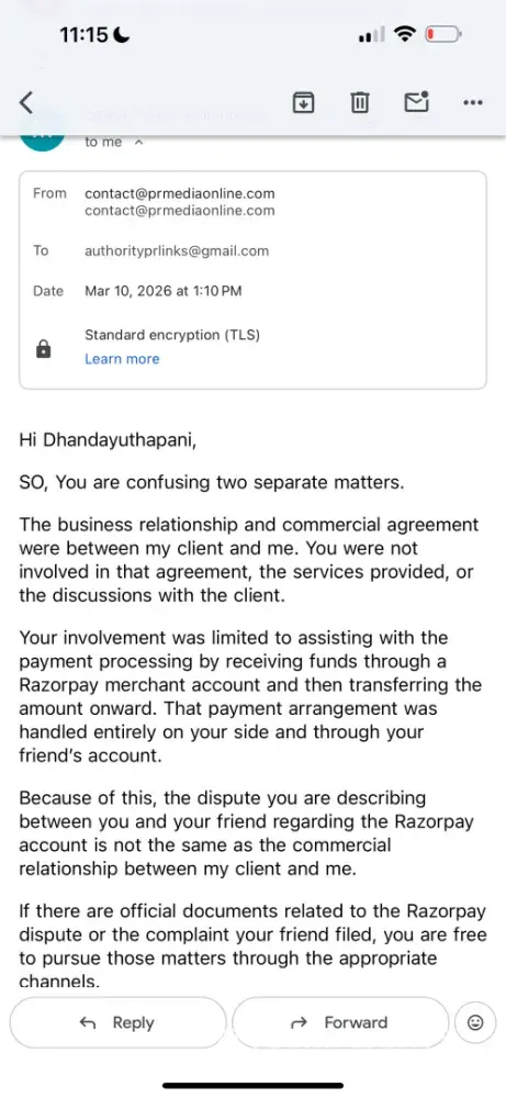 I am filing this complaint regarding a payment dispute with Prmediaonline.com related to services and financial arrangements from 2022.