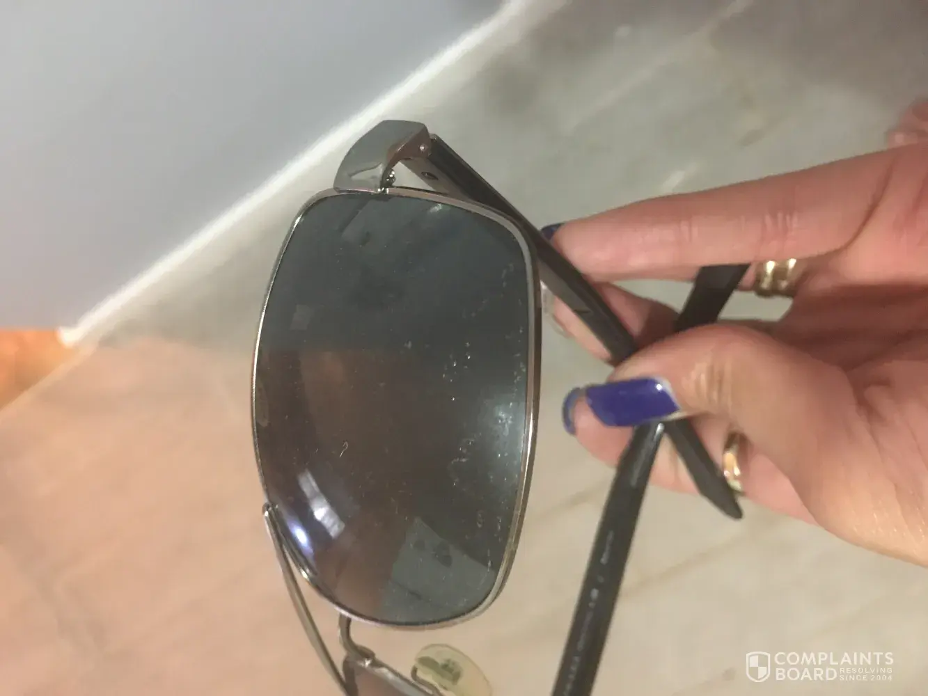 I had purchased Prada Sunglasses from Heathrow Airport London UK two years ago for 230 pounds. Golden frame of the sunglasses has chipped now. Request you to kindly replace the sunglasses. I am afraid I have lost the invoice. Kindly do the needful at the earliest. Photo of sunglasses is attached.