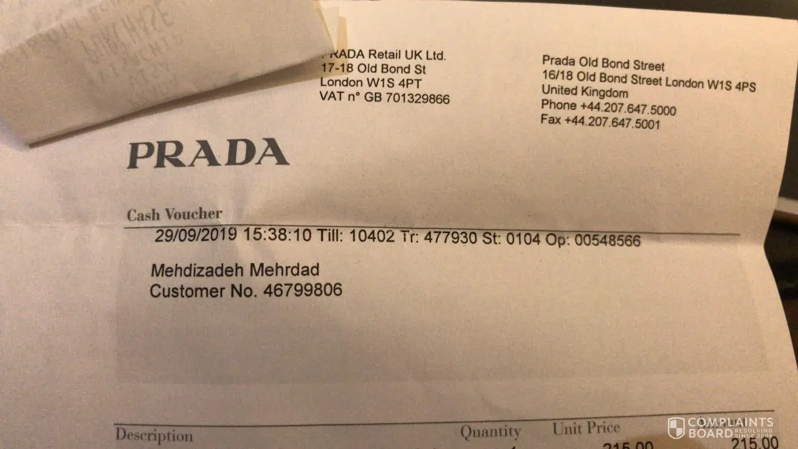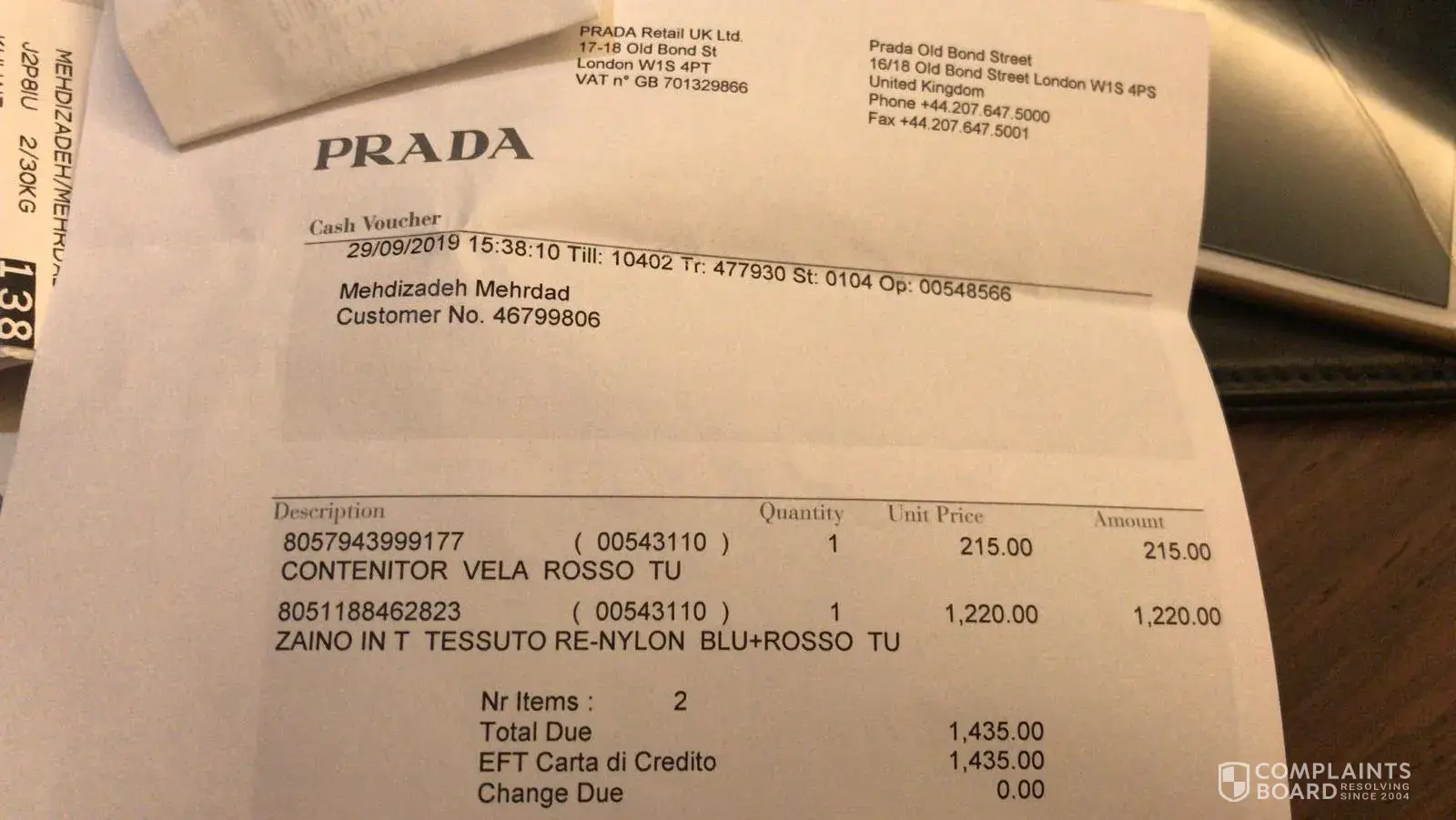 I have bought a shoes from prada istanbul and he s not good from inside their is a bosse inside