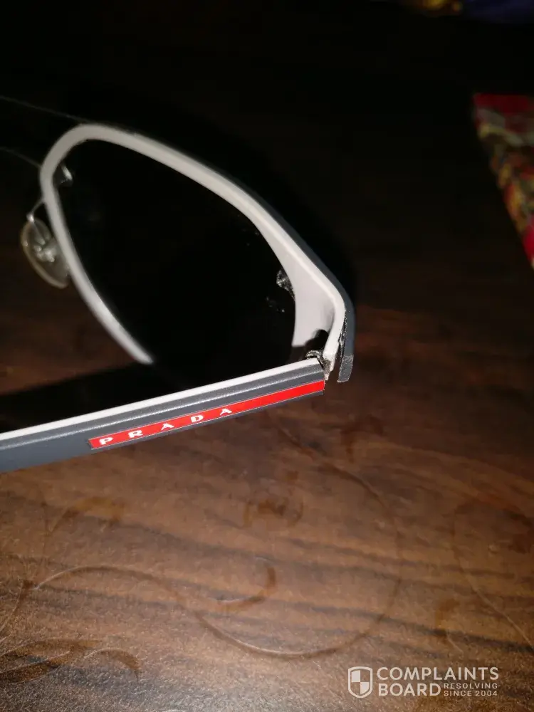 Prada sunglasses side surface of the frame chipping off, need to get repaired or a new pair, can't buy expensive stuff and starts getting chipped, need immediate attention, major manufacturing defect seems .