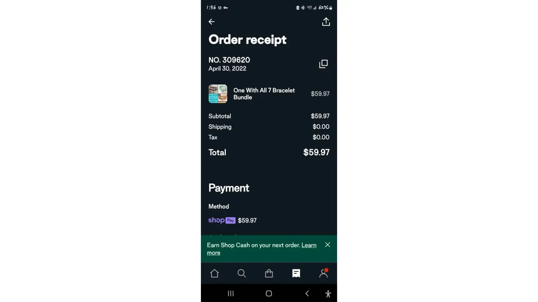 In April 2022, ordered the One With 7 bracelet bundle, for $59.97. Order #309620 status reflects items not shipped yet.