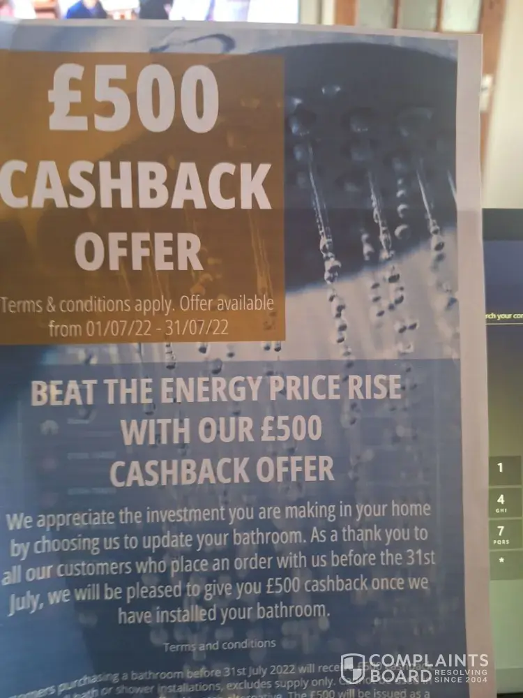 I had a bathroom fitted in 2022 under the promise of £500 cash back on completion of payments this company is now refusing to enter into any dialog, I am now considering legal action