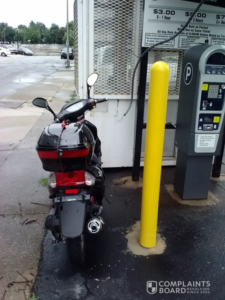 I was wrongly Booted. I parked where I did due to there not being secured parking for scooters. So therefore I parked there to eliminate access to be taken or vandalized. I was only in the Summit Building for 10 mins taken care of business and was booted in that period of time. My scooter is only 49 cc and not considered to be a licensed vehicle.