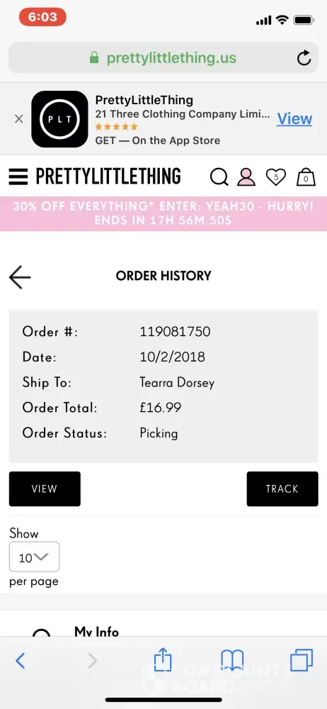 Hi, I ordered some things from the Pretty Little Thing website on May 4th and I was just wondering when my package was going to be delivered. I looked in my email and saw that I hadn't received a confirmation email. I checked to see if the money was taken out of my account for the products, and it was. I just wanted to know how I could track my package or if something was wrong.