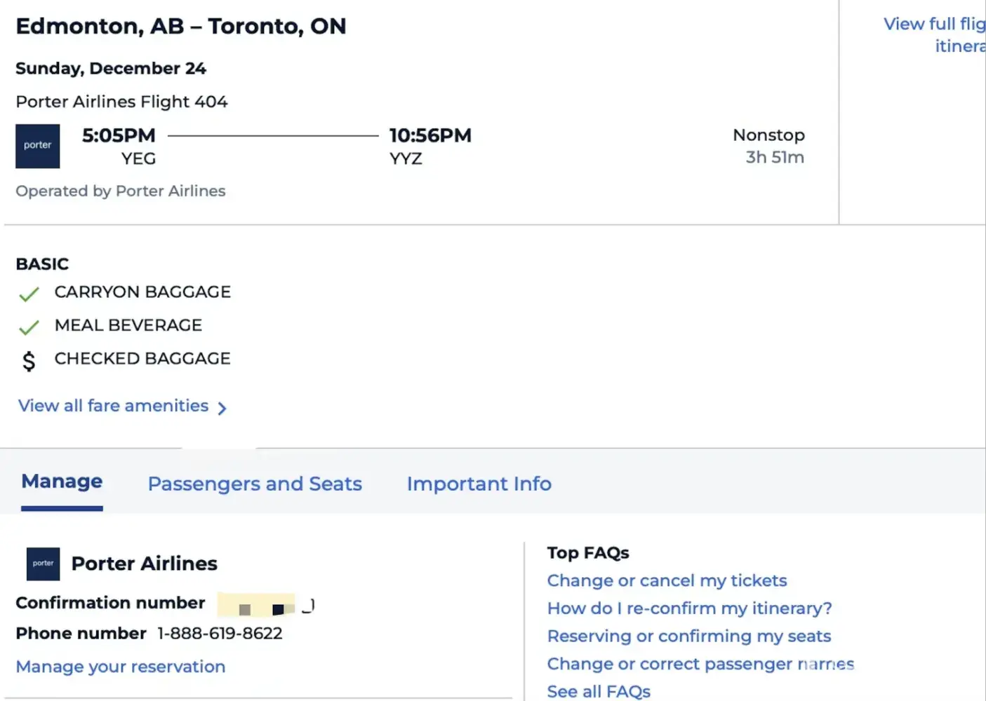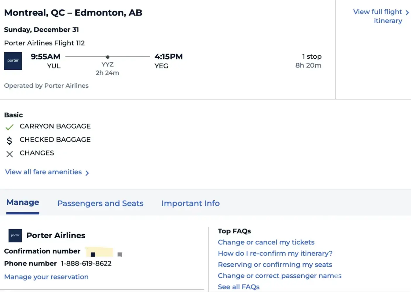 I booked flights on Priceline in November 2023. The departure flight was from Edmonton to Toronto, on December 24; and the return flight was from Montreal to Edmonton, on December 31.