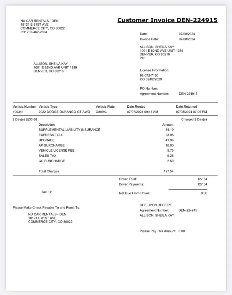 Read full complaintRental Car