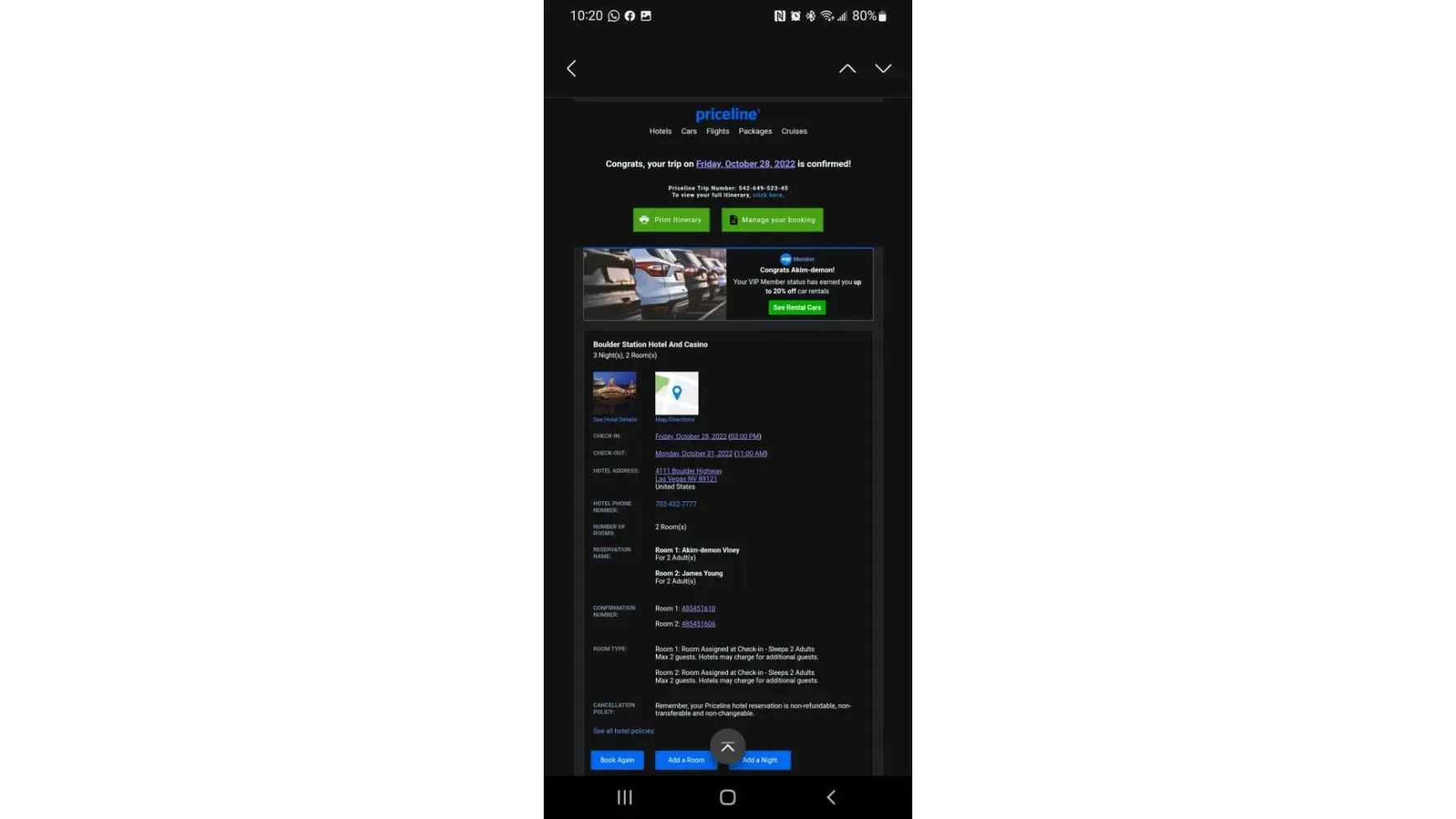 Desired outcome: Cancelled reservation:NPRLDBM0506506-Confirmation only found with RoutesNot Priceline.