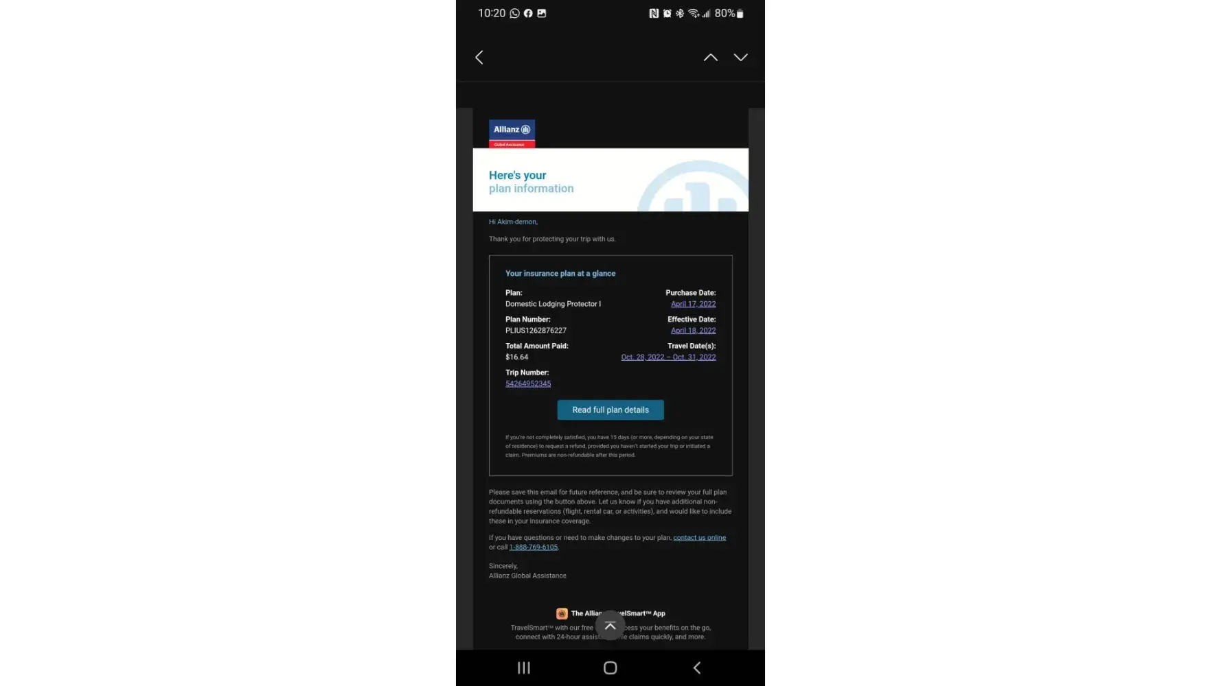 Desired outcome: Refund on travel protection plans purchased on this trip.