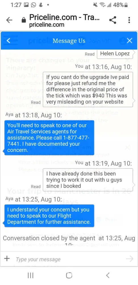 Priceline is a complete fraud. They take your money and once they've got it forget about any customer service.