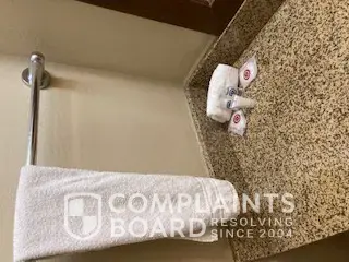On April 17, 2021, I had the unpleasant experience of staying at a Comfort Suites (AZ110) in Tuscon Arizona. We arrived late from traveling from CA and were exhausted. If it had not been so late when we arrived, we would of refused the room and demanded our money back. Upon entering the Lobby, it reeked of Marijuana or something else. Attached are pictures of the filthy condition of our room. Stains on the carpet and furniture. We were given 1 wash cloth, 1 hand towel and 1 bath towel that was falling apart and had string coming loose. Our Hot Continental Breakfast was a brown paper bag with 1 bottle water, 1 orange, 1 fiber breakfast bar and 1 mint.