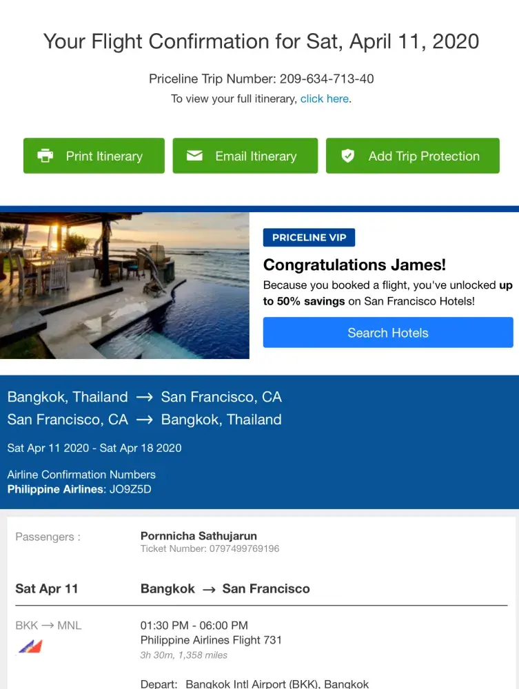 On November 25, 2020, I was to fly out of Dubai with Air Canada back to my home destination in the USA. I booked this roundtrip fair through Priceline on September 25, 2020 with confirmation code and everything.