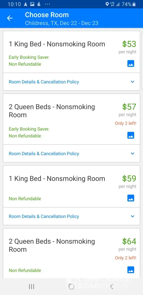 We used priceline app for last 4 years but their rates/service/refund policy & standard has gone way down. Priceline has horrible refund policy. DO NOT EVER USE IT. We had to pay $ 101.42 for a cancelled booking bcoz we searched 2 rooms in a hotel in childress, Texas (through priceline app) & they booked us 2 rooms in a hotel in Elk city, Oklahoma and as soon as we booked we got email confirmation that hotel is booked in Elk city, Oklahoma which is another city & state about 106 miles from Childress, Texas,. We called customer service right away (22nd Dec, 2020) & they refused to refund and blamed us for the mistake, connected with a supervisor but same answer from supervisor. We were on the road & booked another hotel from hotel.com app & got much cheaper & better rates with exceptional service. Through priceline we lost $ 101.42 for the service we never got. Basically, priceline app is misrepresenting bcoz they show hotels from other city/state even when u search hotel for specific city & state. Try it & you will find it yourself. (I have attached the screen shots as proof. Check in every screen shot it shows on top, childress, Texas, in the last & final screen number 4 it does not show on top childress, TX but since u saw in previous 3 screens & hit book button, money is gone & even it was an accident, they will never consider for a refund.)