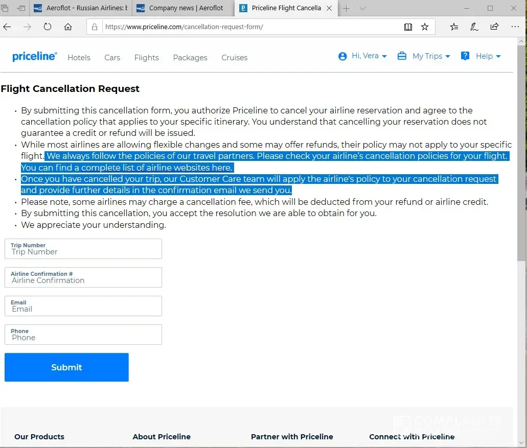 Scam scam scam scam scam! Never use this company. Hotwire was awesome to work with, had 3 different no refund deals with them, and they refunded or moved everyone of them, and they actually helped. Unlike priceline which once they have your money, are completely useless