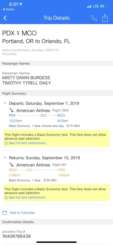 Priceline Trip Number: [protected]