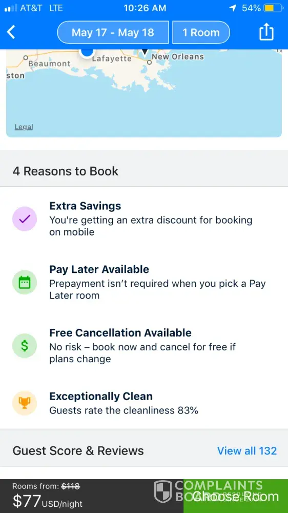 misrepresenting hotel room available