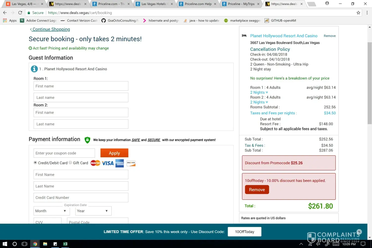 On March 5, 2018 I book an Express Deal hotel room on the Priceline app for 3 nights at $91/night on the site which is available to the general public.