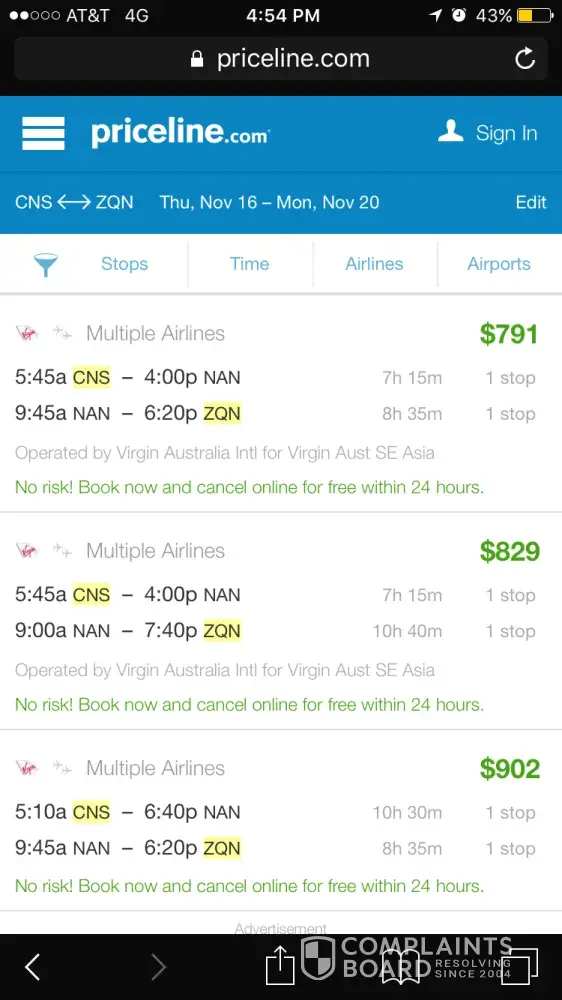 Priceline is a fraudulent company they take your money than say it non refundable my son accidentally booked some rooms I was looking at and they will not refund me my money when it was an accident! ORBITZ does not play that games very trust worthy !