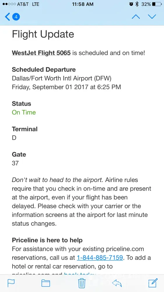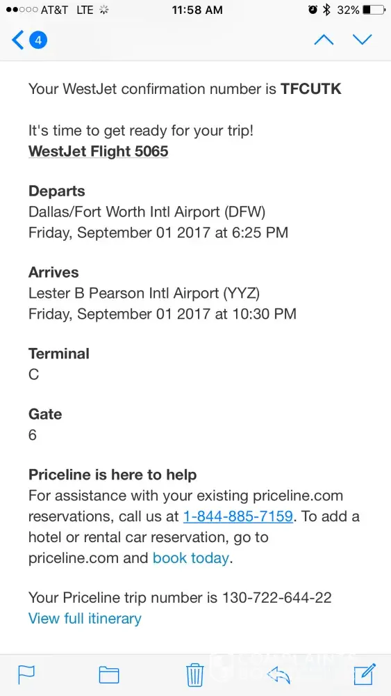 I booked a flight with Priceline from Dallas to Toronto and back with a confirmation. The day before the flight I got an email saying my Terminal is at C. I tried using their confirmation number they sent me to check in with WestJet airlines but it says they couldnt find my flight. Arriving 2 hours and 25 mins early I went around C looking for a WestJet agent but never found WestJet. I then checked my email from Priceline and says your flight updated to Terminal D. Panicking I took a terminal link to D and no where could I find WestJet. I asked about any airline worker I saw and people kept pointing me in loops. I then got on a Termlink to terminal E and saw a Westjet counter but no one at the counter. I then went all around E looking for a different WestJet counter and even asked TSA but no one knew. I then went back to the WestJet counter and saw a phone number to WestJet and called it and the lady told me my flight is WestJet but operated with American airlines and I can checkin with them. She also gave me a different checkin confirmation number. At this time it was too late for me to catch my flight. American Airlines tried to put me on standby but the ticket is WestJet so they couldnt do anything. I called WestJet and they said Priceline can cancel the ticket because they don't recieve the money until i'm on the flight. Priceline said there is nothing they can do and it's pretty much my fault for missing my flight. I still have the emails they sent me on where my terminals are and a picture at E where WestJet is. I lost a different one way ticket thru Air Canada because I could not make this flight. Priceline told me they will hold this credit but Air Canada will charge me 200 for rebooking my flight. So basically i'm left with nothing. I have proof that Priceline.com messed me up. Date flying to Toronto is Sept 1, 2017. Date flying back is Sept 5, 2017.