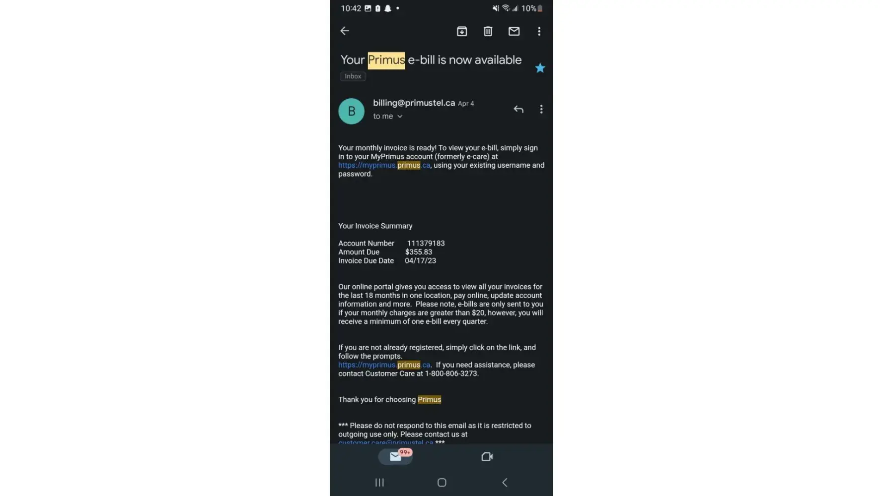 Primus.ca customer service