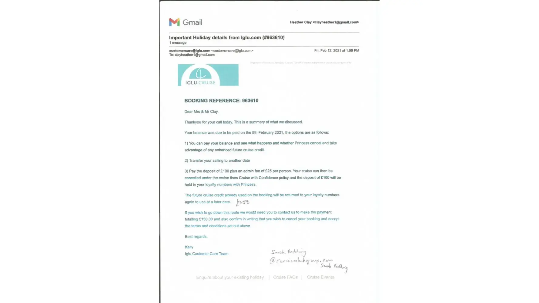 Cruise cancelled twice by Princess due to covid restrictions we now need to cancel due to health reasons gave 3 weeks notice, see reply from IGLU attached.