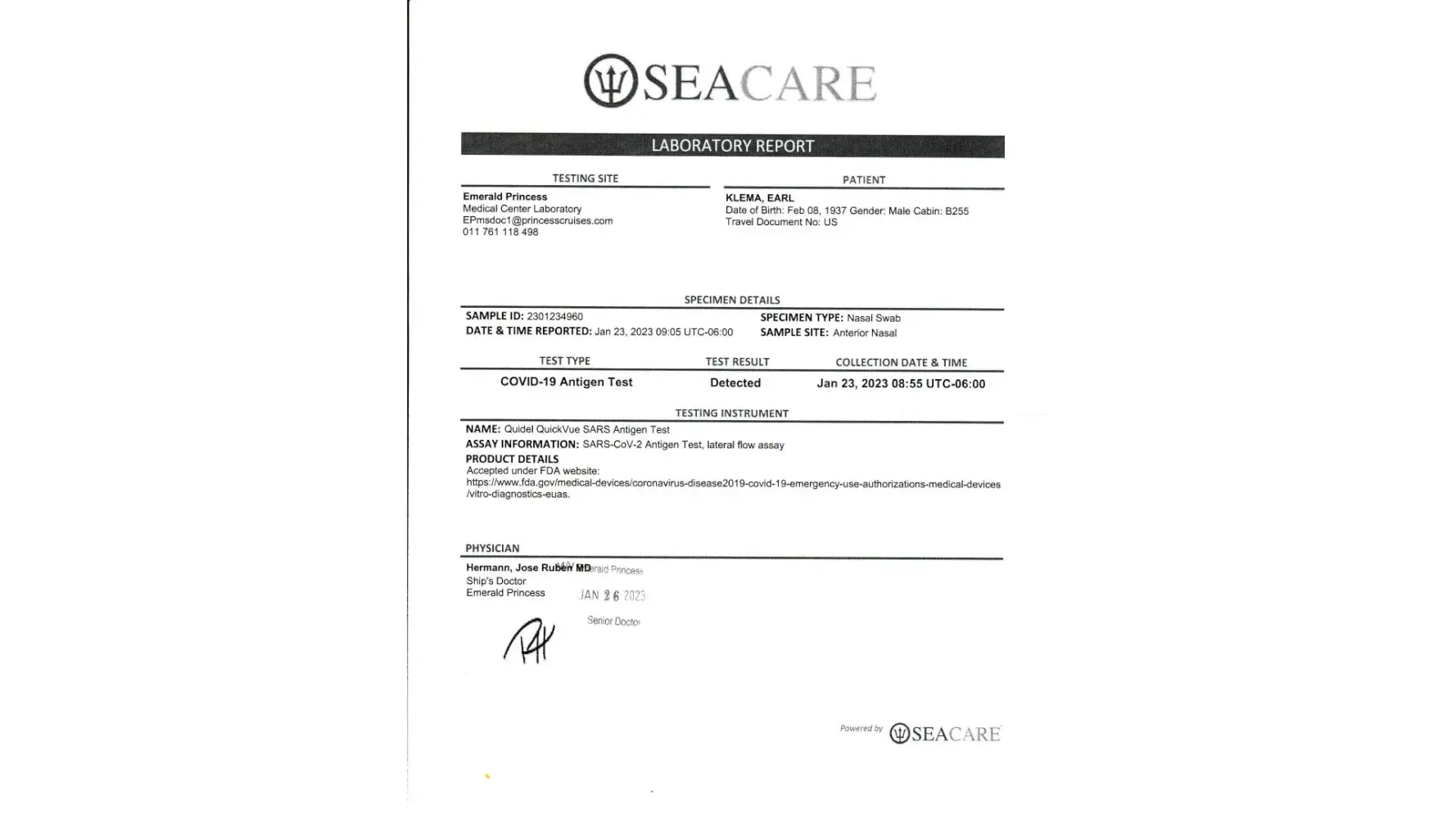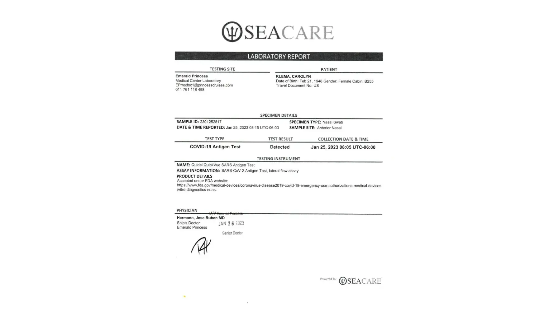 My husband and I were on two 15 day cruises on the Emerald Princess in Jan 2023. The first one departed Port Everglades on January 2, 2023 and the second (LA to Fort Lauderdale) on January 17, 2023.