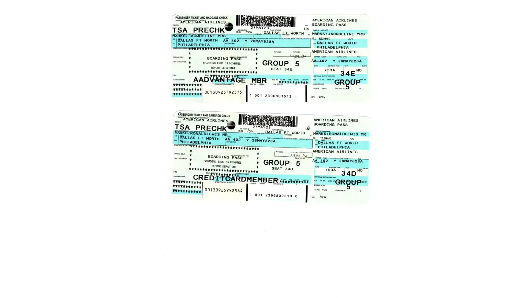 They assigned us seats the next morning on Flight # 402 for DFW to PHL.