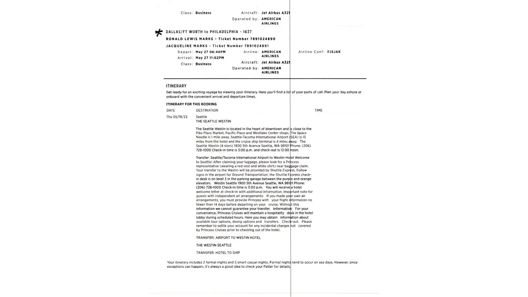 On May 27, 2023, our American Airlines Flight # 2767 from Seattle to Dallas Fort Worth was delayed 1.5 hours. Causing us to miss our connecting Flight
