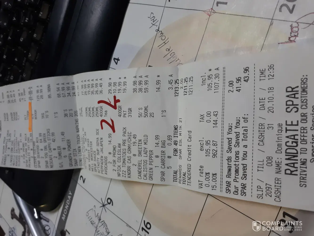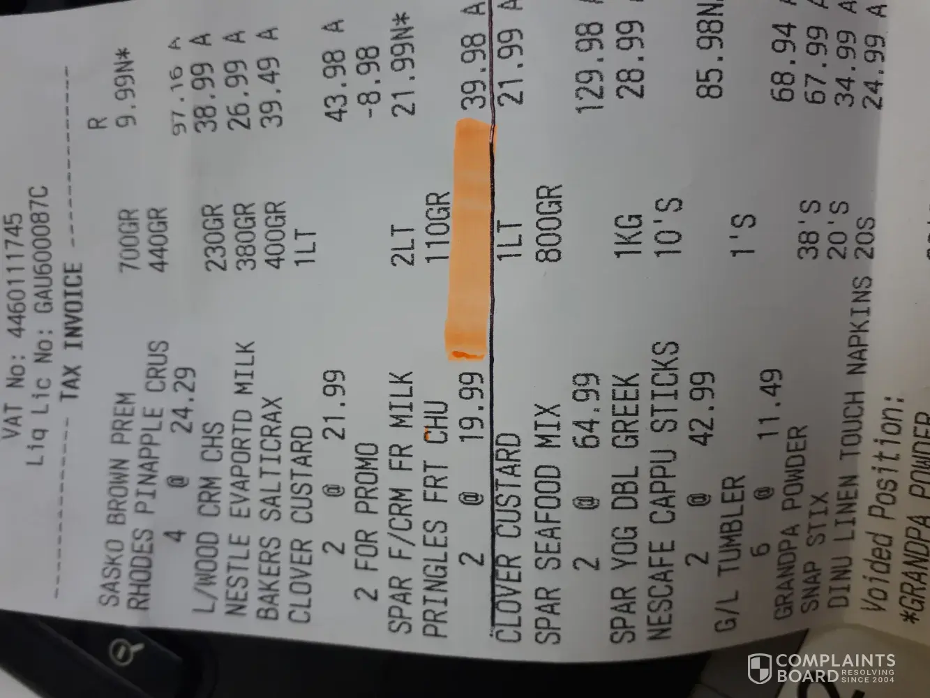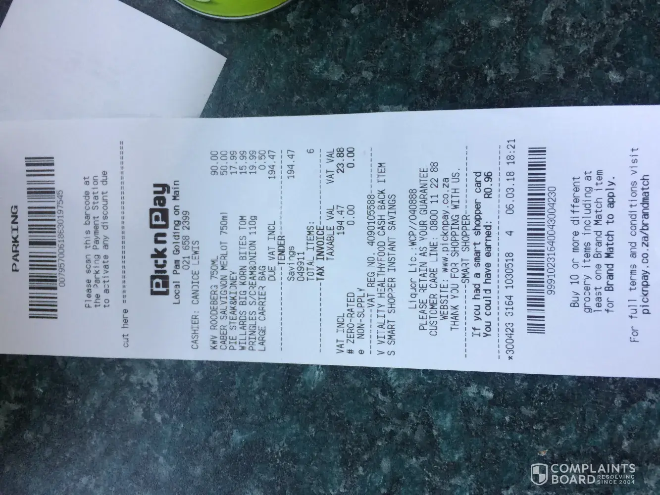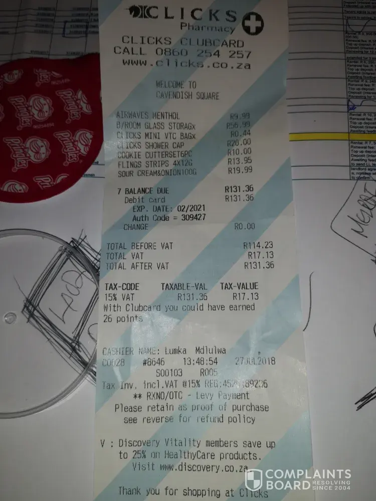 I'm writing to you today with a complaint about your product I purchased at pnp Muizenberg.