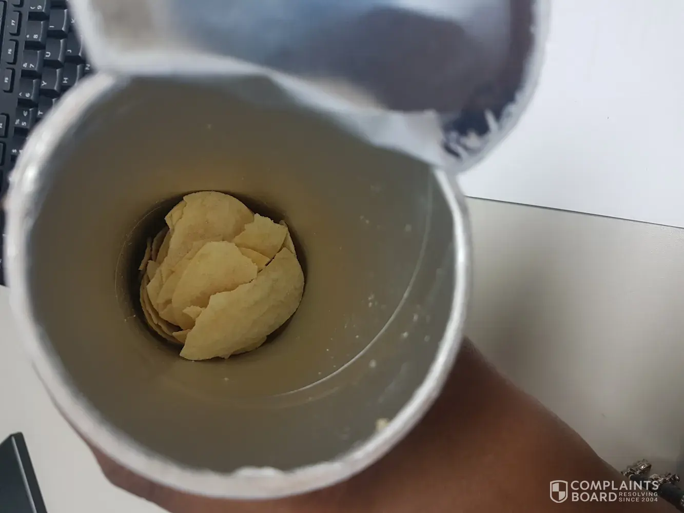 need replacement regarding Pringles tube contents totally shattered throughout