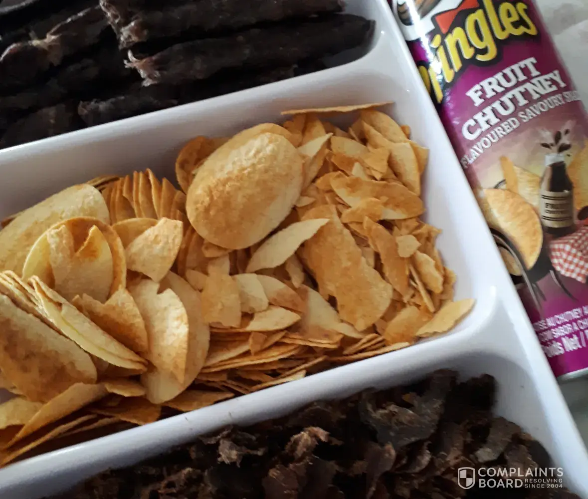 I buy Pringles on a weekly basis and we where always happy with your product but lately I am VERY disappointed. This is now happening to often. Whenever I buy a tube, half off the chips inside are BADLY broken. I bought two tubes of fruit chutney flavor (batch number [protected]) again on Friday 19th 2018 at Spar Randgate Randfontein for my birthday party Saturday 20th, only to discover this again.