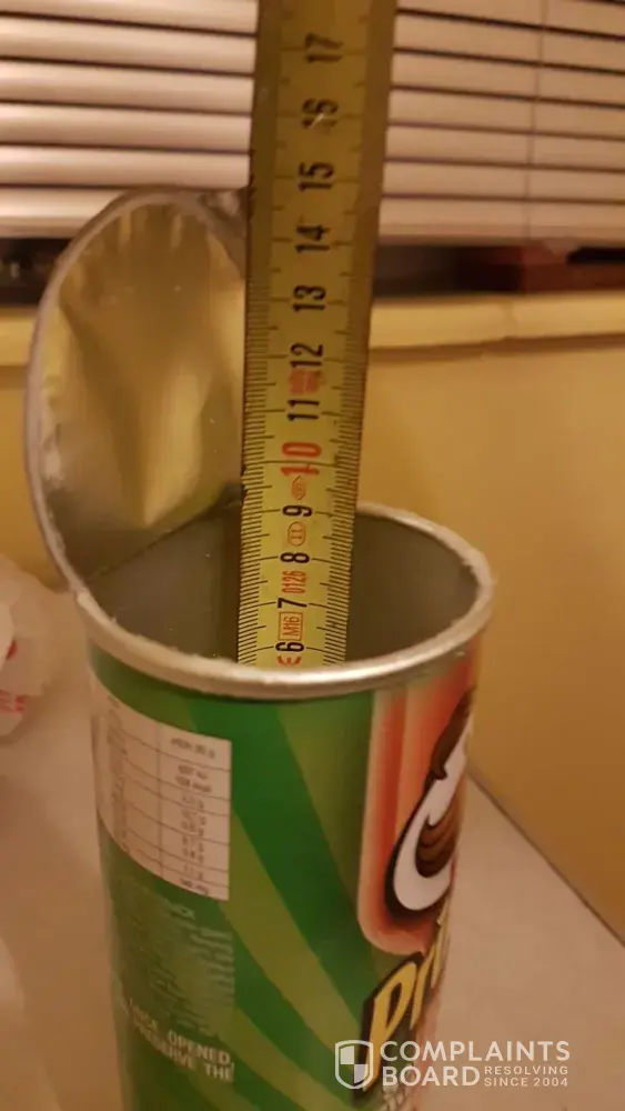As a regular buyer of pringles Chips I have been greatly disappointed by the quality and quantity of their chips. I have just bought the sour cream pringles and opened the pack to find less than half of the container full! This is my my first encounter, the others that I have purchased before have also been around half the pack. Have you decreased the amount of chips you put in the tin? If so please DO NOT LIE TO YOUR CUSTOMER and sell us a dream, because the packaging implies the amount that should be in there ! I am very angry about this and would honestly like a refund asap. I will no longer be purchasing this product because it's false advertising and I have been disappointed on numerous occasions even after giving the benefit of the doubt .