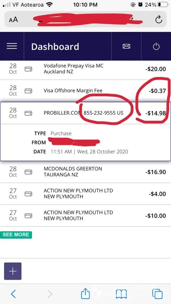 i got a random charge on my bank from PROBILLER. 34.97_V for $46.33 and i have no idea why. i am not subscribed to any sites and would like a full refund.
