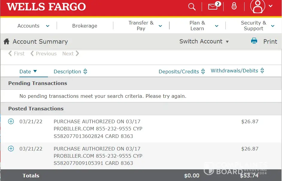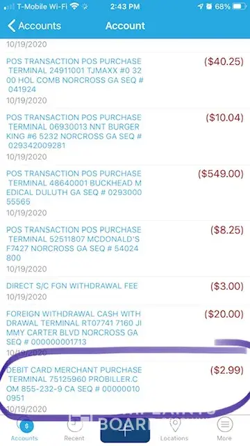 Every month I have been receiving a tax or withdrawals of 52 dollars from ProBiller. and I don't know what it is from and I do not like it taking my money it's annoying me seeing that i am having money that I've earned taken away from me it is making me a little anxious knowing that some one has access to my bank account. It has been happening every month on the same day I am even sometimes loosing 1 dollar randomly and it scares me.