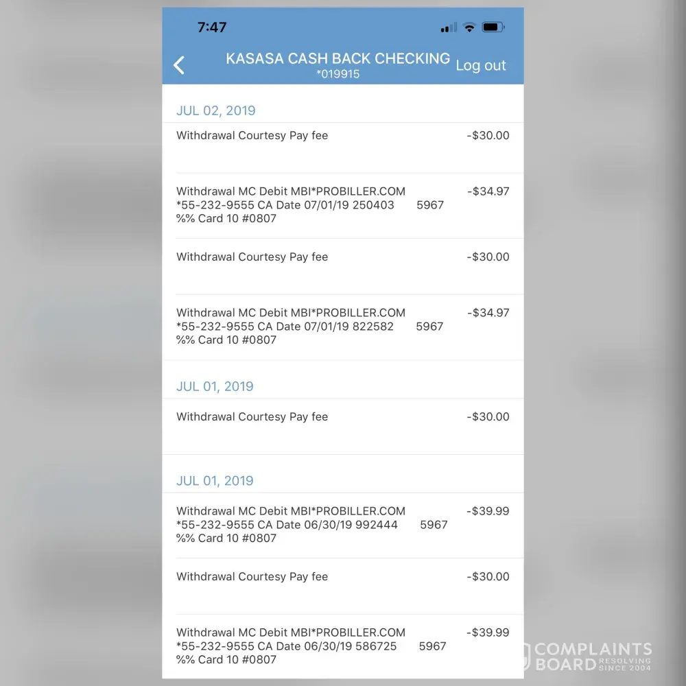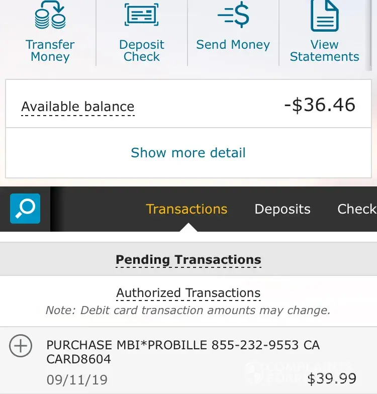 My know is Soloman Martin and Im with chime online banking. Well I have a complaint about funds that where taken out of my account from MBI probiller.com today one at 2:11am for $1.09 and another at 2:20 for $34.97. I don't know why these funds where deducted from my account. Please explain this to me. I know nothing about MBI Probiller.com and have never used their services. So if so please explain to me why the money was taken and if possible I would like a full refund. Thank u