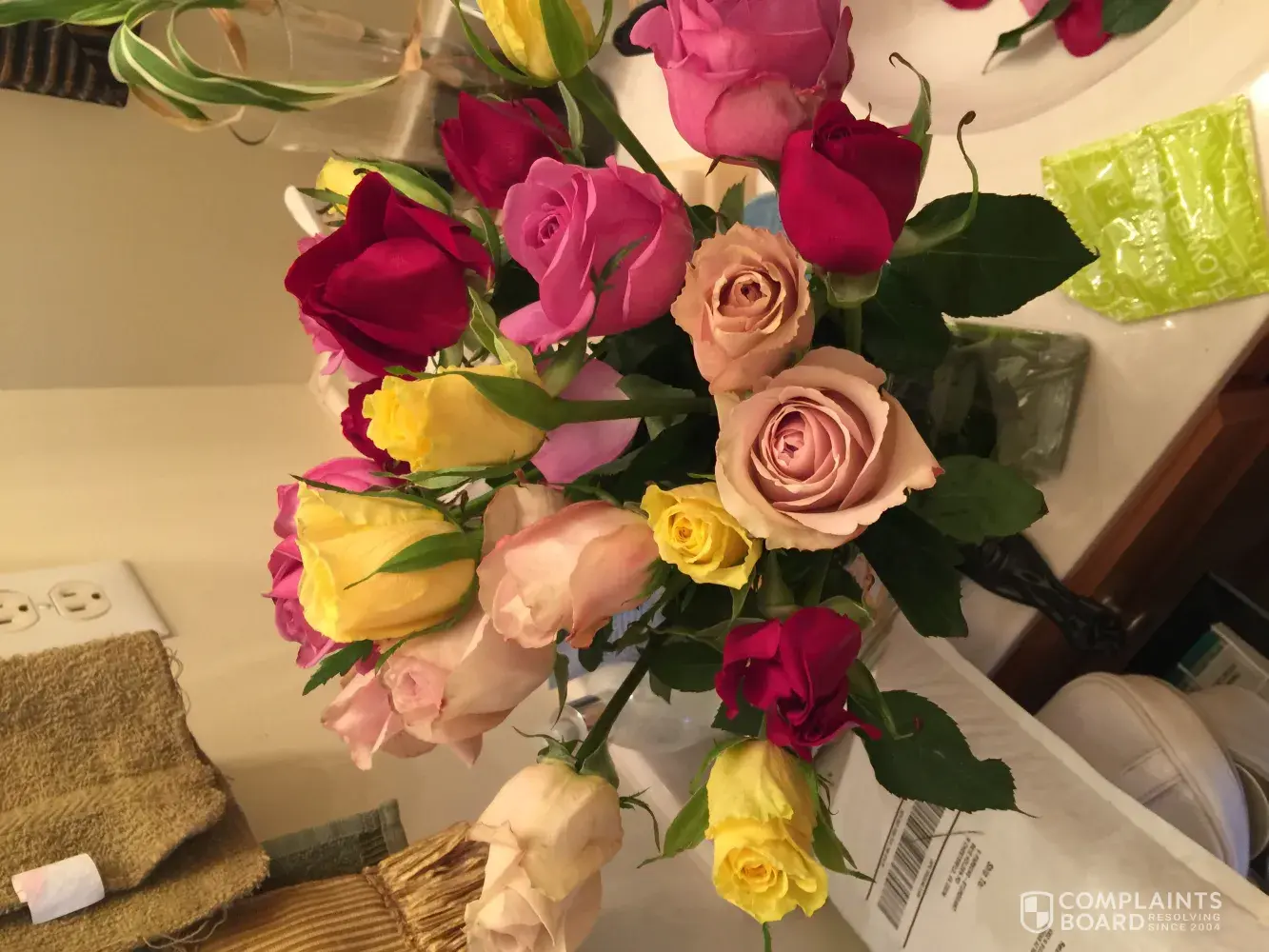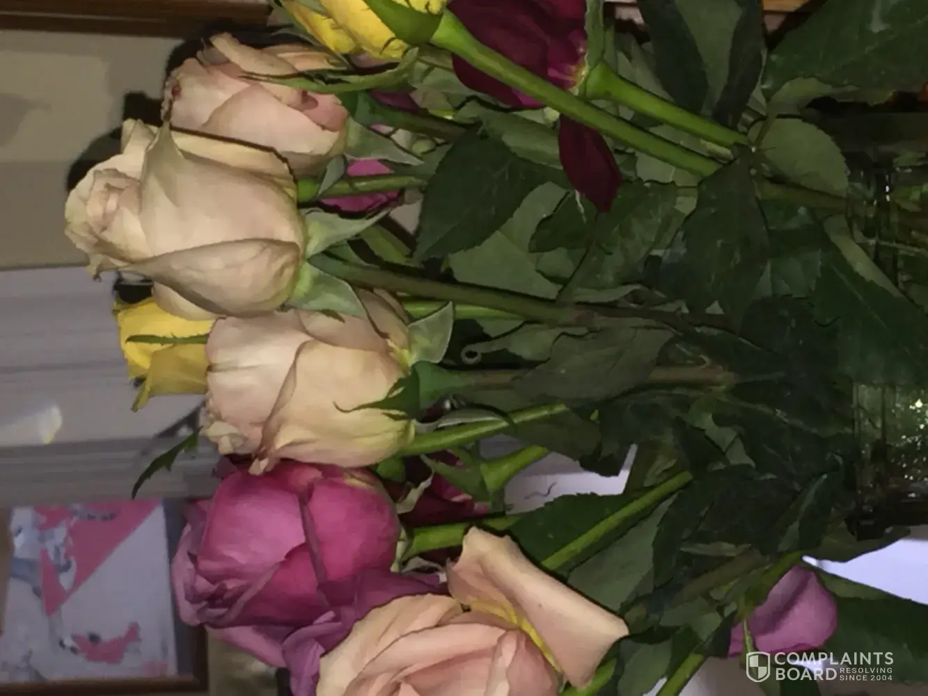 My daughter ordered this arrangement for me for Mother's Day. It was a lovely selection and arrived in a timely manner. The flowers were fine except for the three pink roses. They were old and beyond being used. I recognize how an old rose feels and acts. I cannot see where a reputable florist would have used them. Also, I received no flower food for this arrangement. The pink roses were beyond being helped by food or anything else. I realize it was Mother's Day and a very busy time, but that is when you really need for things to be as good as possible. I would be happy to have just these three roses replaced, even though this arrangement will be gone by that time. Thanks in advance.