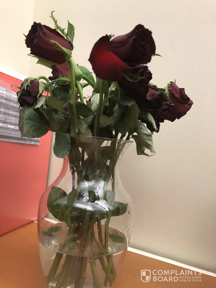 I ordered flowers (ORDER #[protected]) to be delivered on Valentine's Day and after only 3 days, they started dying and looking ugly. My girlfriend clipped the bottoms and even fed them flower food but nothing helped. I responded to my email from ProFlowers (email titled, "Your ProFlowers Order Has Been Delivered") but never heard back. I actually emailed 3 times with pictures but never heard anything. I've attached the picture that I sent. I'm very disappointed and was embarrassed because I'm sure she thinks I just got those cheap flowers at the grocery store or something when actually I spent over $100 for this order.