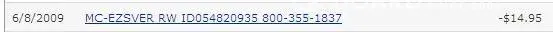 Then today, I was checking my debit card statement online and noticed there was a charge for $14.95 from a company I didn't recognize and I started to research this to find out what it was. The merchant was listed on my statement as EZSVER RW ID055181287, so I copied and pasted the first part (EZSVER RW) into my browser and was shocked at the search results. You can see some of these results at the following link:
