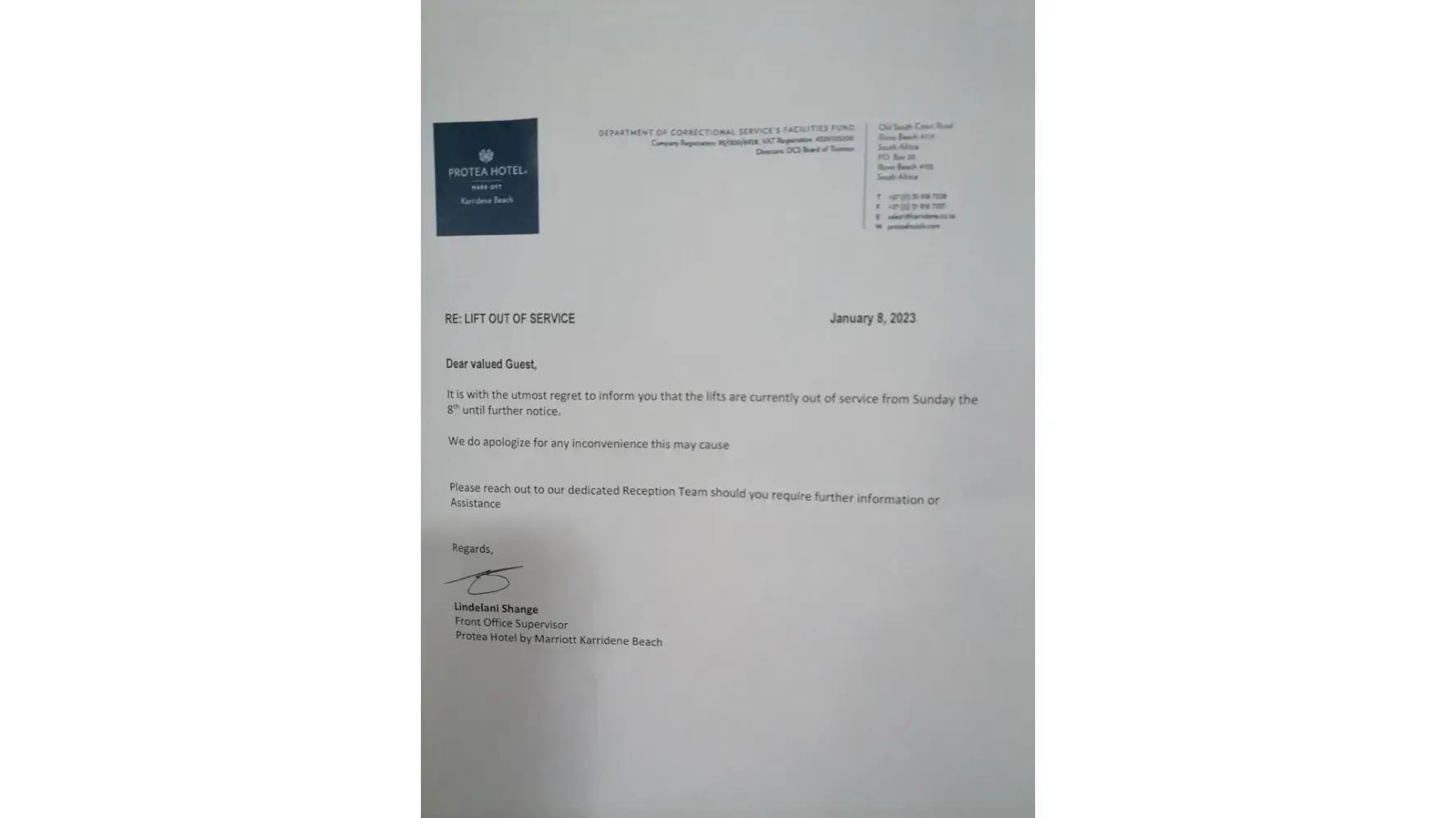 Read full complaint62 Protea Hotels Complaints