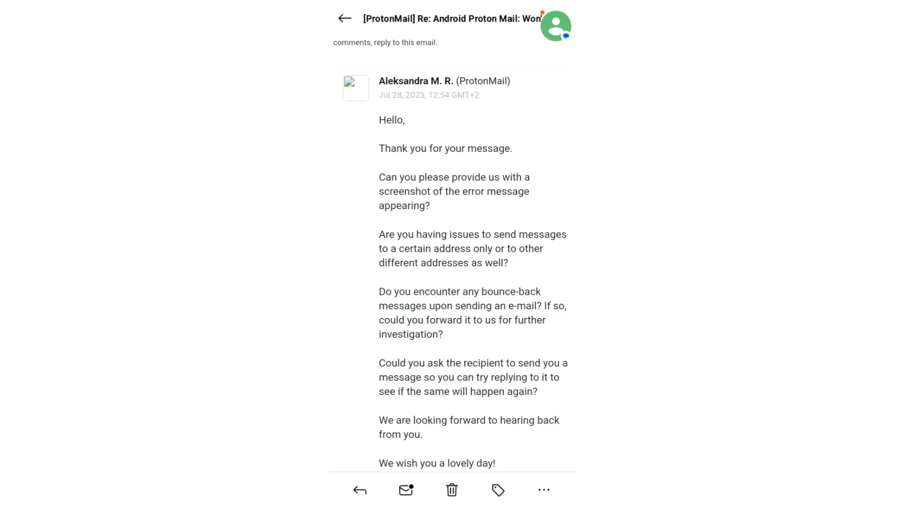 I hope they respond soon and provide some assistance with my issue. I really want to continue using ProtonMail, but they need to step up their customer service game if they want to retain loyal customers like me.