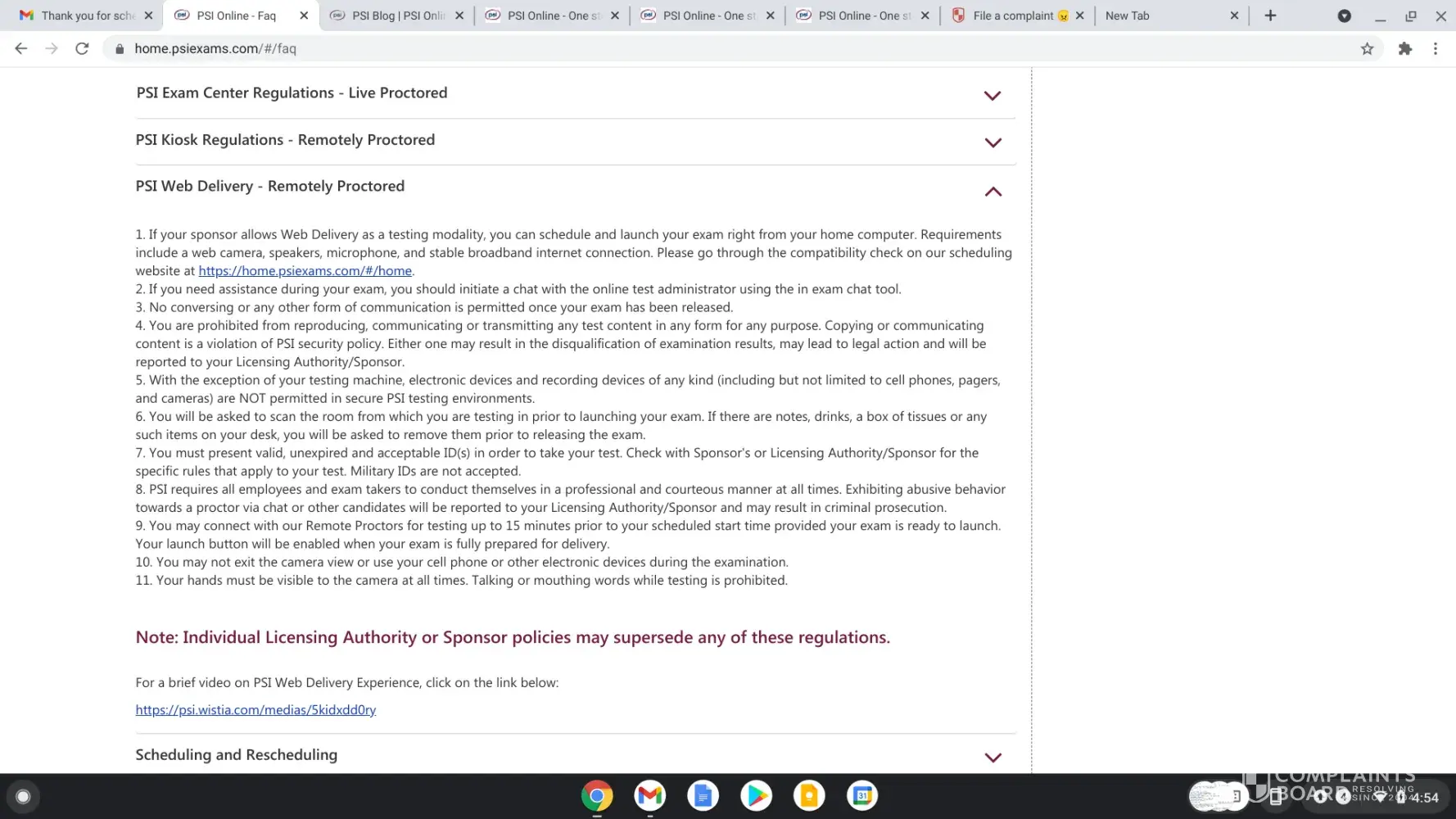 To whom it may concern, I appreciate your apology however I have been trying to accomplish taking a test for over eight weeks with your company and your company has done nothing but discriminate against me and dictate what I canning can't have when it was clearly stated in all the documentation what I need to be successful! I am not asking permission from PSI exam to use the accommodations that I am rightfully allowed! I have contacted cat contacted the justice department and filed a formal complaint against your company and if I don't have an answer by Monday how you're going to accommodate me and fix this there is going to be further documentation with my advocate from the ADA.