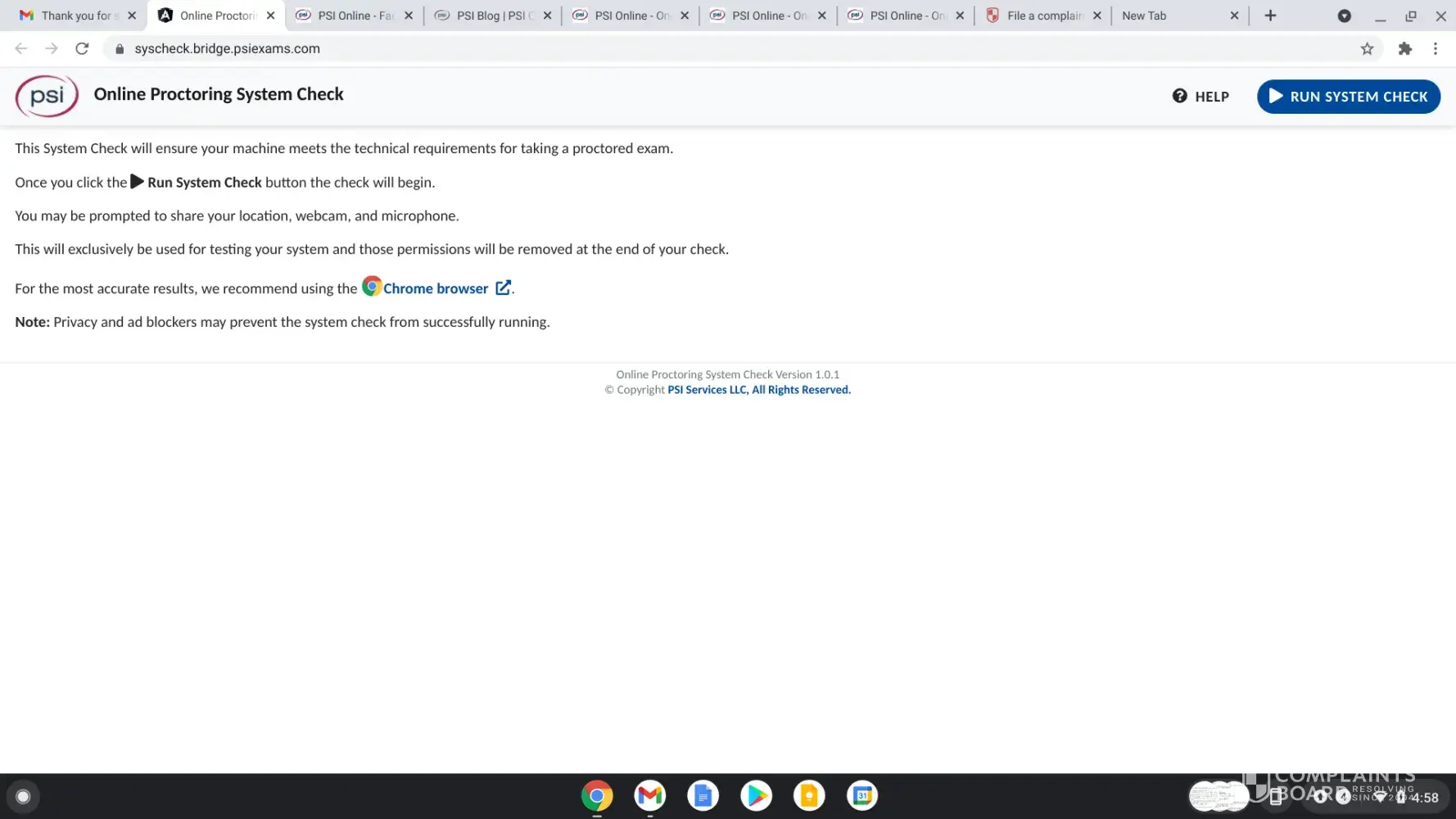 I was online with tech support for about 3 hours Wed. just trying to use the link YOU sent to schedule it. Everyone I spoke with had terrible English-assume you outsource to a foreign country. On hold another hour yesterday trying to log on to take the exam. Then a half hour waiting on a proctor. Told proctor no way I could pass after this fiasco. Did not get a fair opportunity. I missed by 4 points. Was scoring mid 90s on mock tests. All PSI's fault. Tried to get in touch with customer care-another hour on hold. Now I am told that I can't get a refund and must wait 10 days to re-test (on site, because I'd have to be crazy to use your remote 'system' again). When I finally got in touch with 'customer care' was told that hour wait times are normal because you are such a big company. You provide the absolute worst experience possible. It apparently is your business model so that, when people fail, you make more money on the retests. Despicable. I will make it my job to warn others. Based in your previous reviews, this is probably normal PSI customer service. Reporting to BBB.
