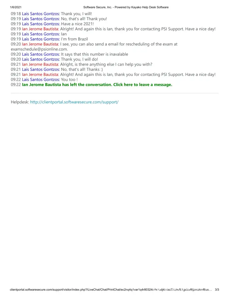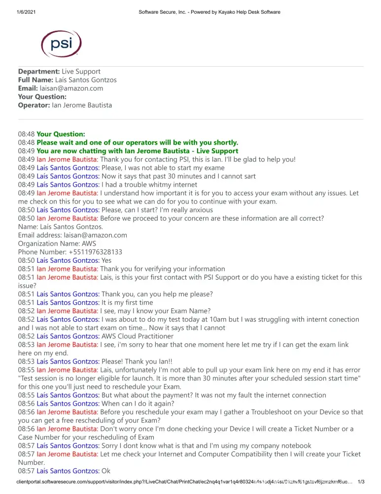 Since I'm from Brazil, I contacted your support (examschedule@psionline.com) as requested by theirIT support and so far I have not received any response (the deadline of 7 working days has already passed) .